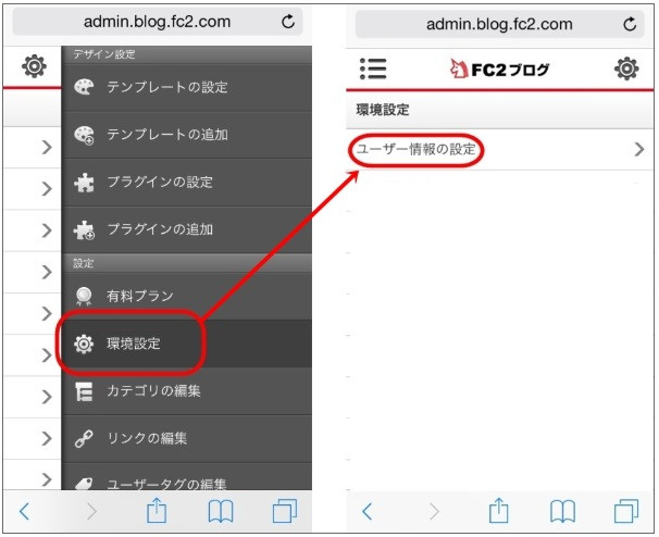右メニュー[環境設定] > [ユーザー情報の設定]からアクセスします。