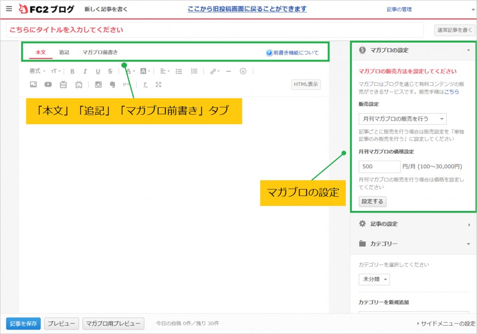 通常記事で書いていた内容は、マガブロの「本文」になります。