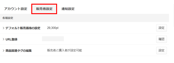 販売者情報を登録・変更される場合は、「販売者設定」タブをクリックしてください。