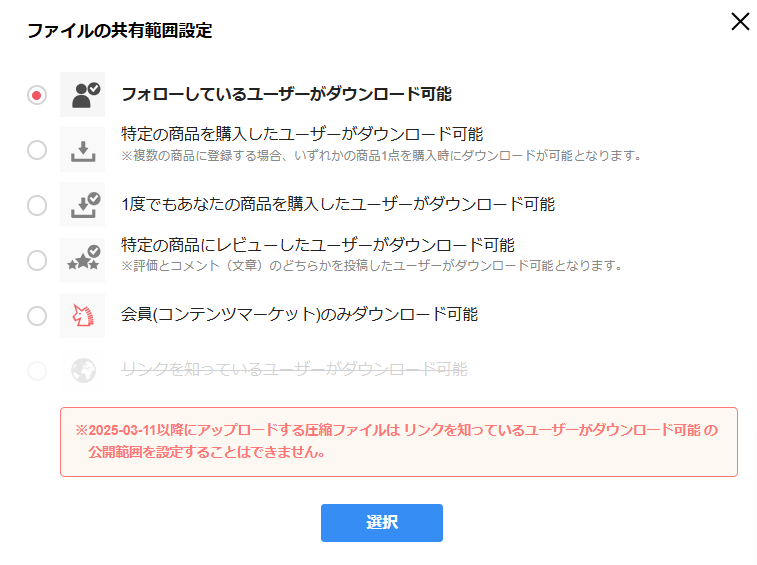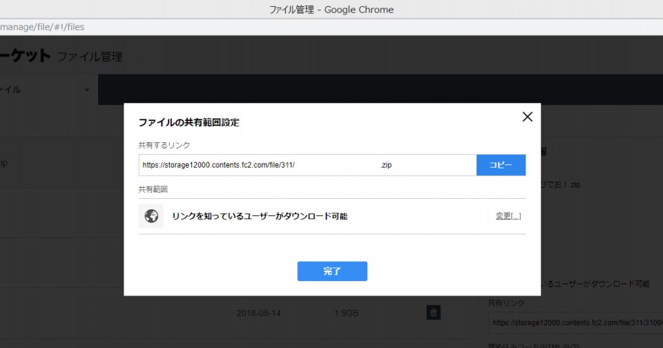 3.以下の画面であれば、現在の設定が「リンクを知っているユーザーがダウンロード可能」とされています。
