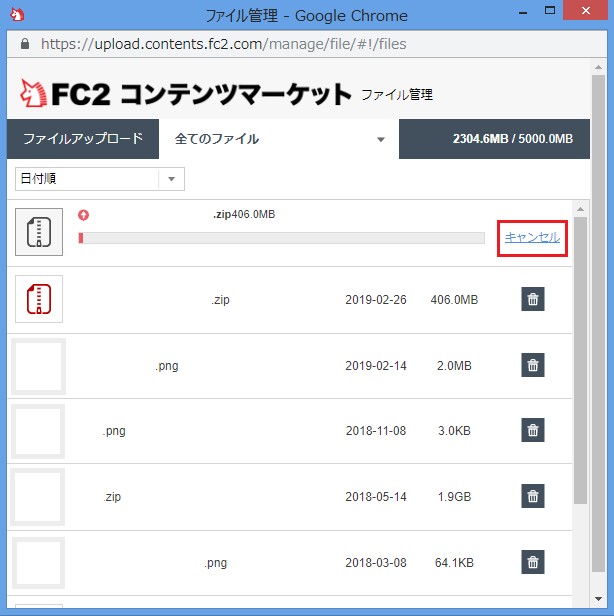 アップロードしたいファイルを画面上にドラッグ&ドロップ、