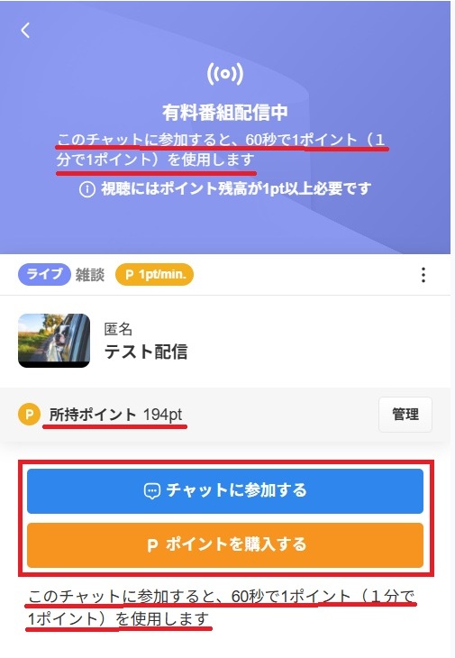 必要なポイントを所持している場合は、「チャットに参加する」ボタンをタップしてください。