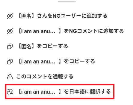 視聴ページ(配信ページ)にはコメントを自動翻訳する機能があります。