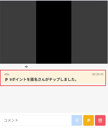 チップが行われると、コメント欄にチップを行った人物とチップ数が表示されます。