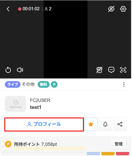 プロフィールは、ライブ管理画面右上部「三」ハンバーガーメニューをタップし、